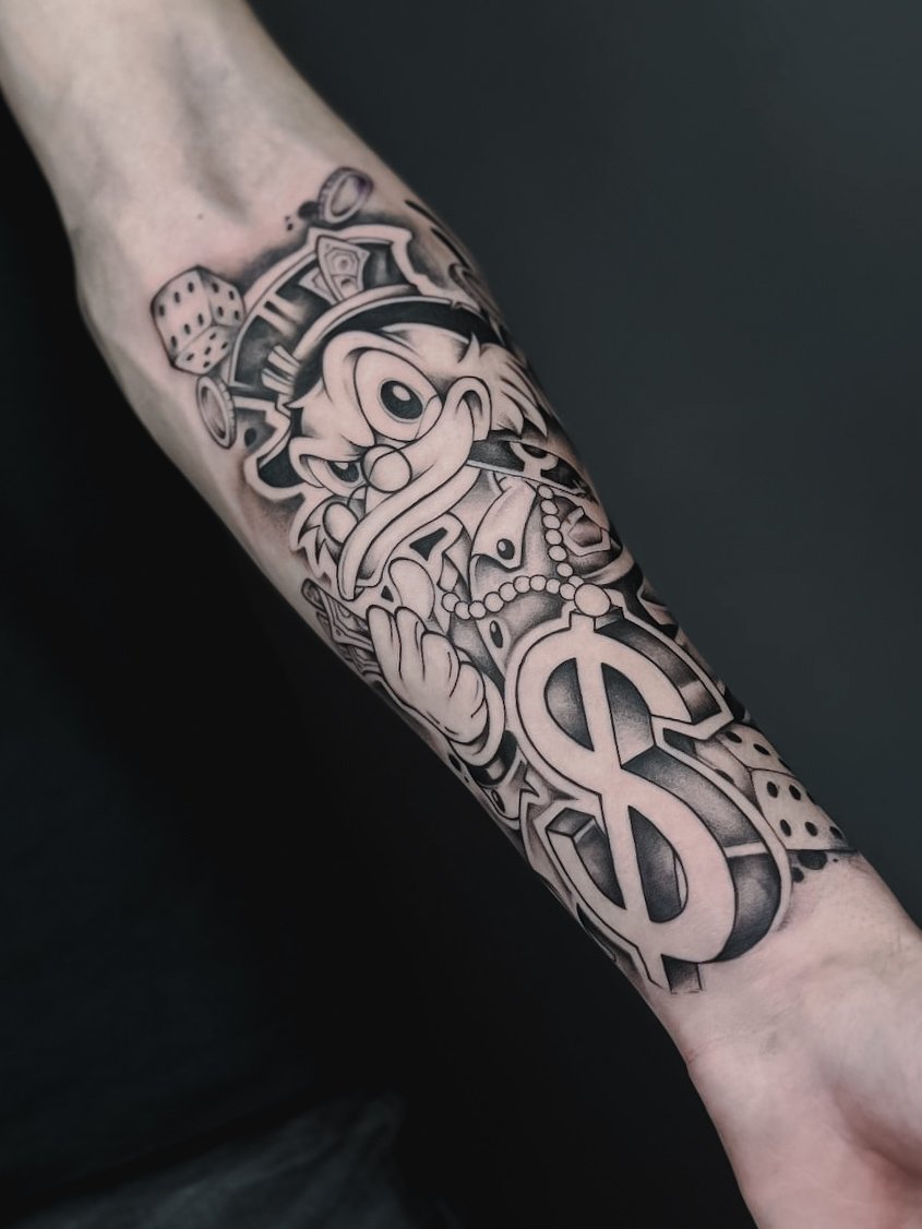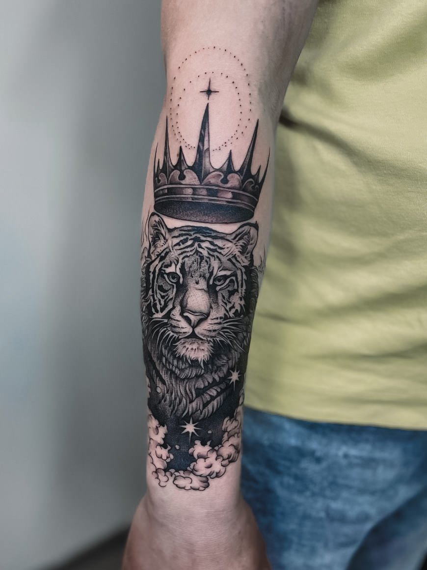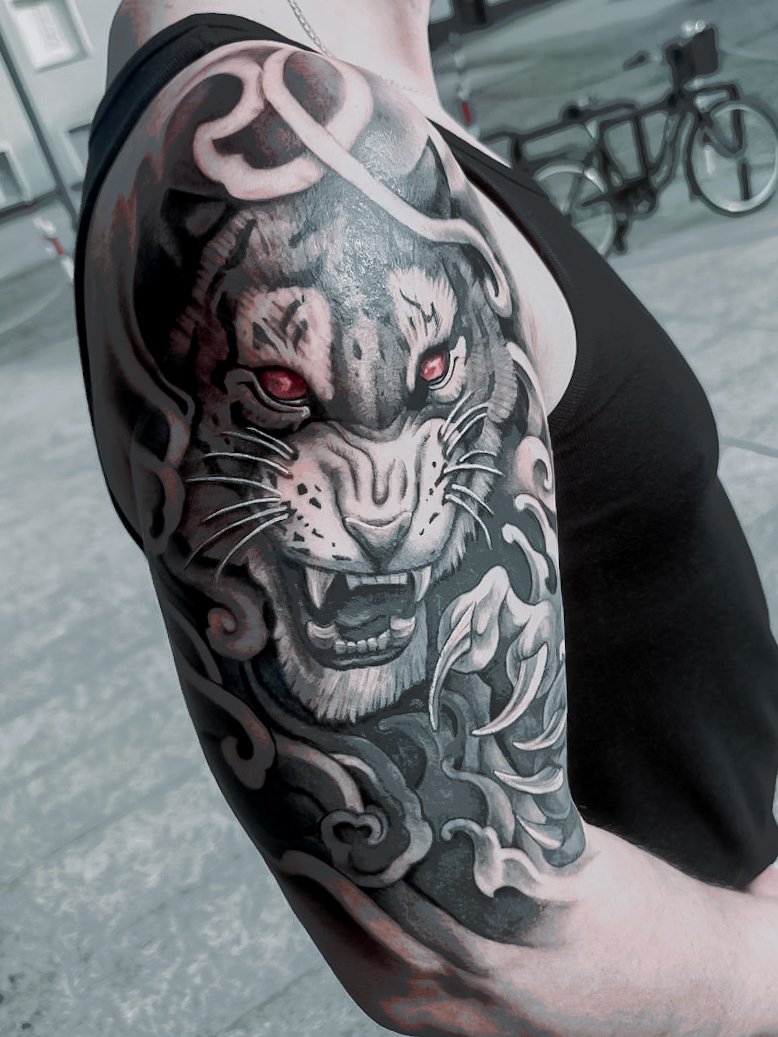 - Animales: los leones, tigres o lobos en el brazo simbolizan coraje, poder y liderazgo.