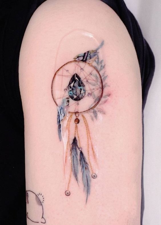 No solo se cuelgan sobre la cama, sino que también se usan como llaveros, pendientes y colgantes para collares. Llevar un accesorio así no siempre es cómodo y es fácil perderlo. Para nunca separarse del amuleto, muchos hombres y mujeres prefieren hacerse un tatuaje con la imagen de un cazador de sueños.