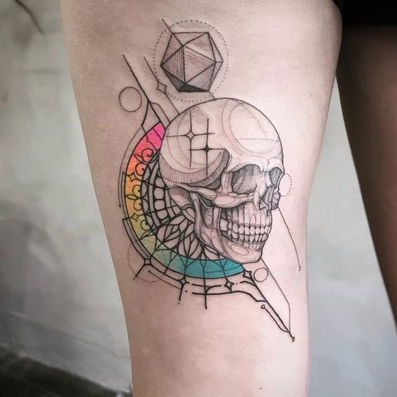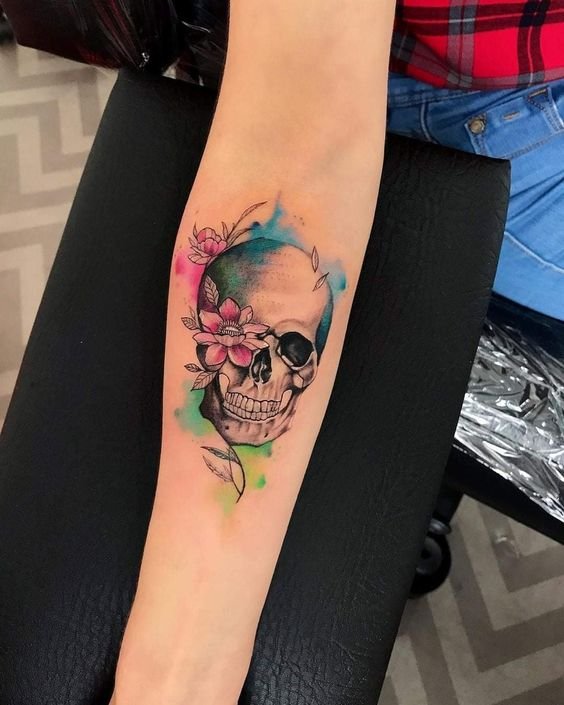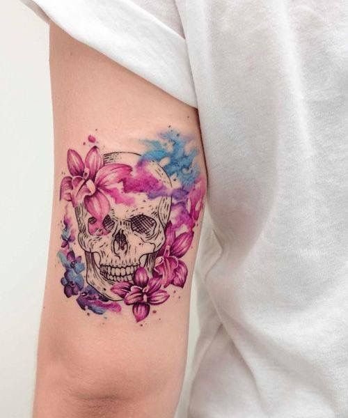 Últimamente, se encuentran con frecuencia tatuajes de calaveras coloridos y brillantes tanto en hombres como en mujeres; estos tatuajes se están convirtiendo en una decoración original y completamente universal para tu cuerpo.