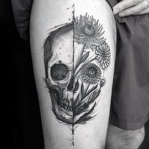 En estilos de tatuajes como el old school y el chicano, las imágenes de calaveras se hicieron conocidas gracias a Santa Muerte, la diosa mexicana de la muerte. Aquí, las calaveras femeninas están decoradas con flores, creando una sorprendente armonía entre la vida y la muerte. Estos tatuajes simbolizan la fuerza irresistible de la naturaleza, la belleza en las experiencias y nos recuerdan que la vida y la muerte están inextricablemente vinculadas. Al mismo tiempo, en la mitología india, por ejemplo, un tatuaje de calavera es un símbolo de la propia vida, su fugacidad y, al mismo tiempo, un recordatorio de que la vida debe ser apreciada y disfrutada en cada momento.