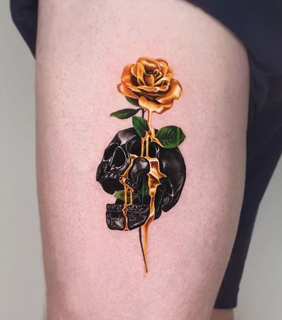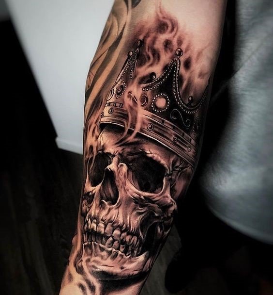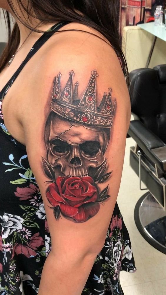 - Corona: una corona en una calavera puede indicar poder, fuerza o incluso destino. Puede simbolizar el deseo de liderazgo o el control sobre la propia vida.