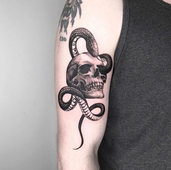 - Serpiente: como símbolo de la mente fría, la planificación y, a menudo, incluso la frialdad, la serpiente con una calavera en tándem puede tener significados inquietantes y representar la muerte.