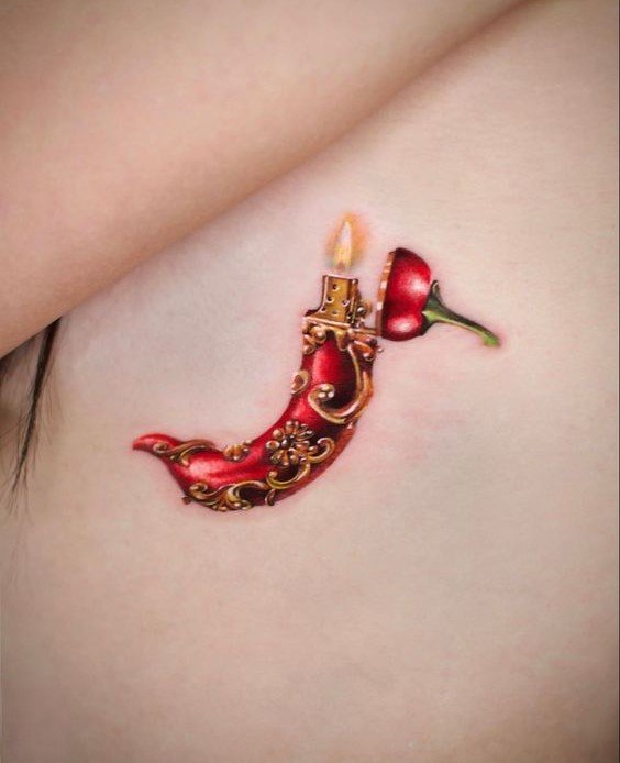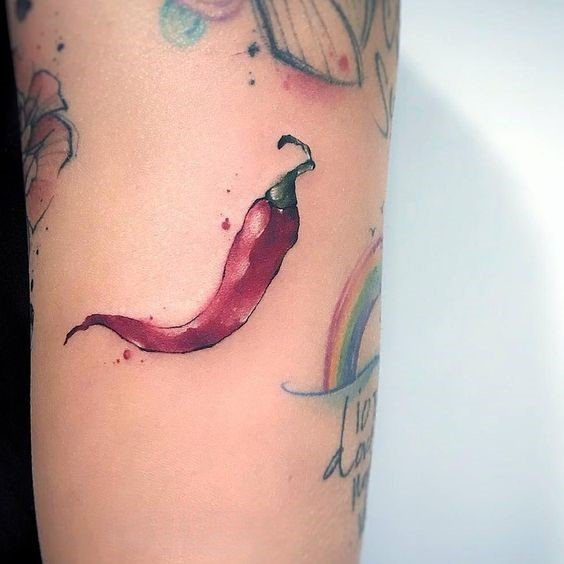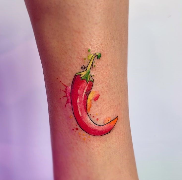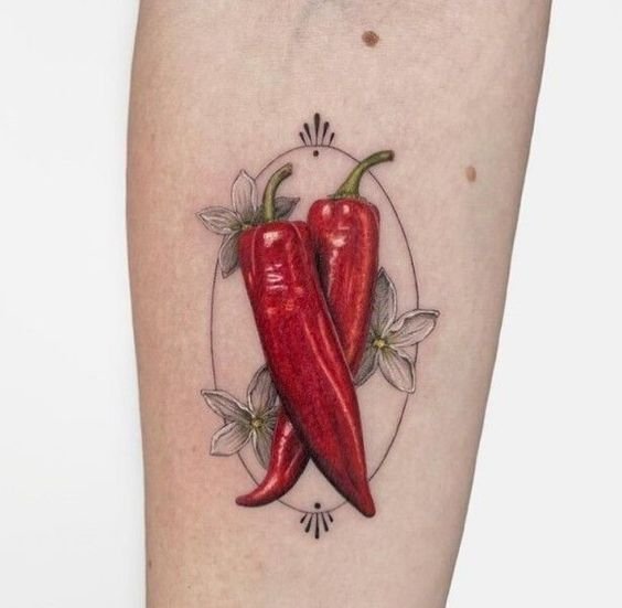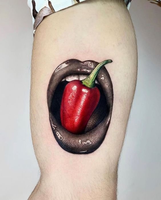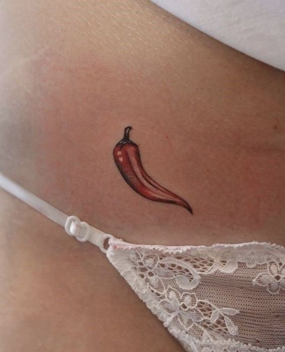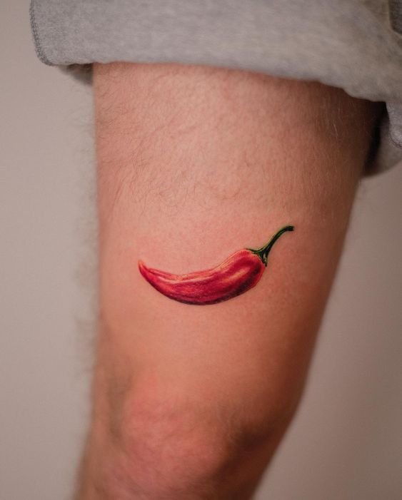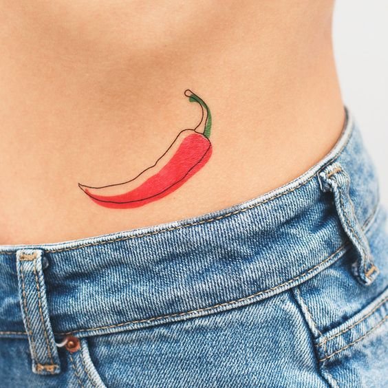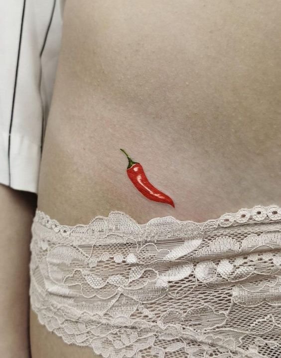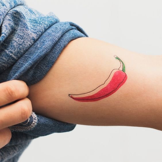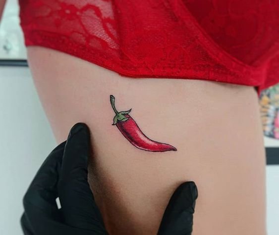 - Sensualidad. El color rojo del pimiento y su forma pueden sugerir atractivo sexual, lo que convierte este tatuaje en una opción ideal para quienes desean resaltar su sensualidad.