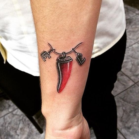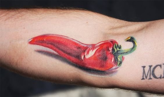 - Antebrazo. Esta zona es perfecta para un tatuaje de tamaño medio. Aquí puedes colocar una imagen detallada o una versión estilizada del pimiento.