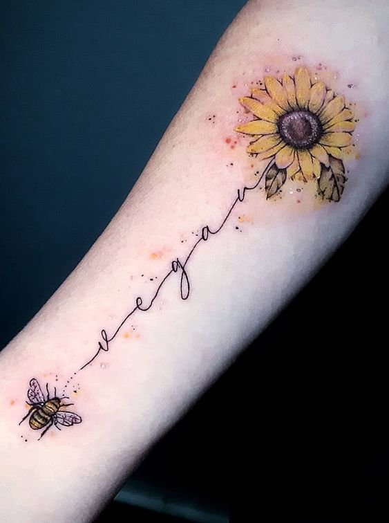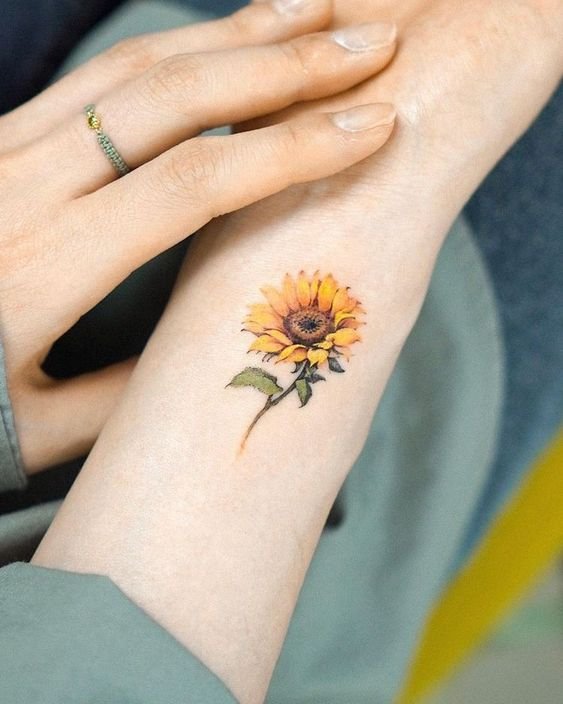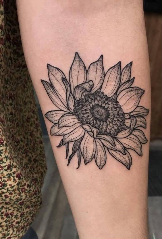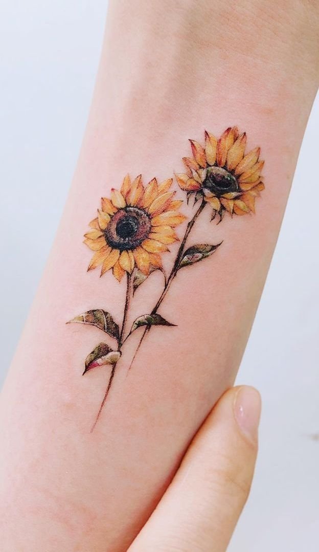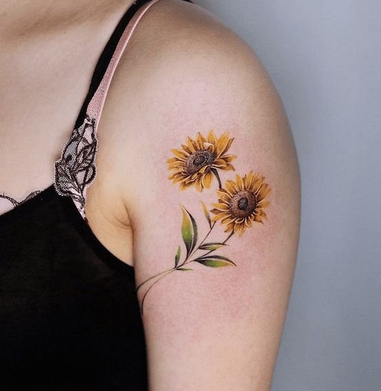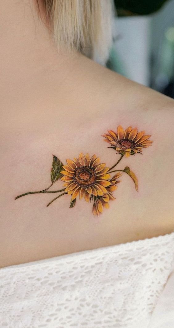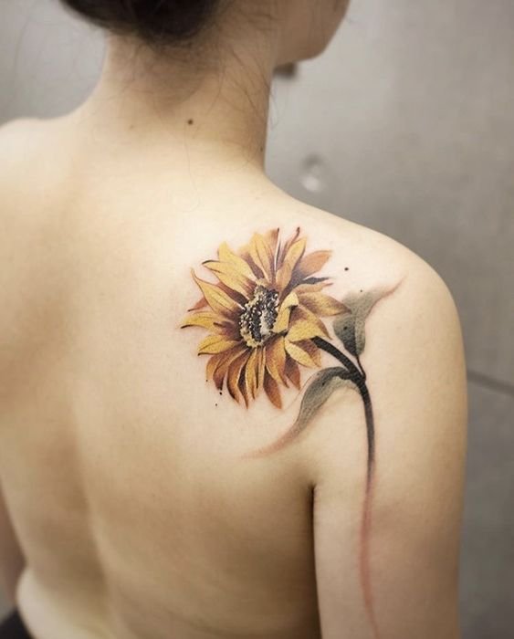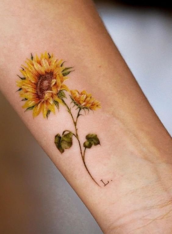 Los tatuajes de girasoles varían en tamaño, color y estilo de ejecución.