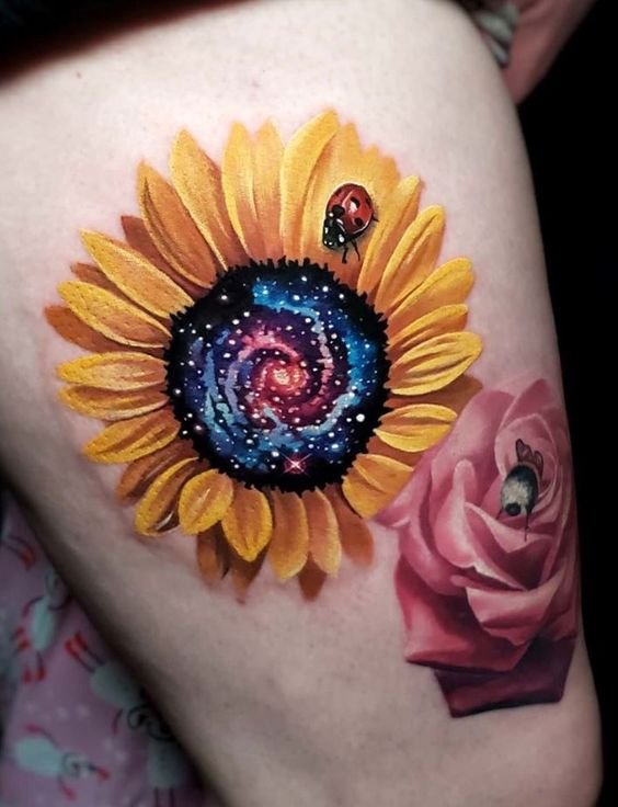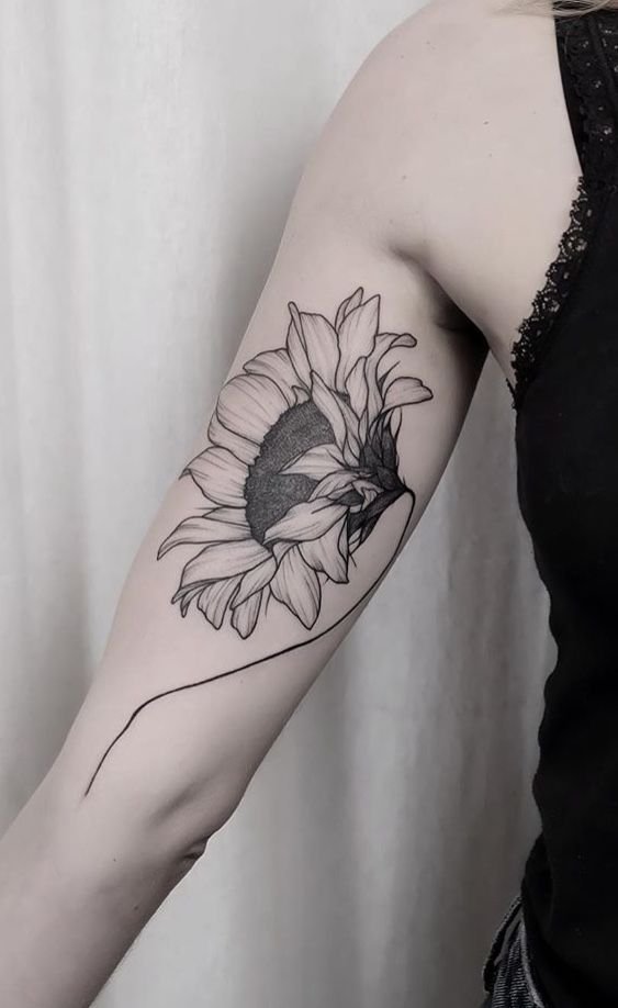 El tatuaje de girasol es adecuado para personas alegres y optimistas que miran con confianza hacia el futuro y disfrutan cada momento de la vida.