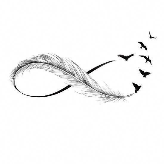 - El símbolo de Infinito con una pluma - denota ligereza en los movimientos, disfrute de la vida, aceptación de todo lo nuevo, liberación de problemas y dificultades. Ideal para almas románticas y creativas.