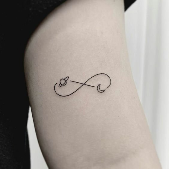 - El tatuaje Infinito en el fondo del cielo, las estrellas y los planetas - simboliza el deseo de adquirir nuevos conocimientos, el desarrollo personal constante.