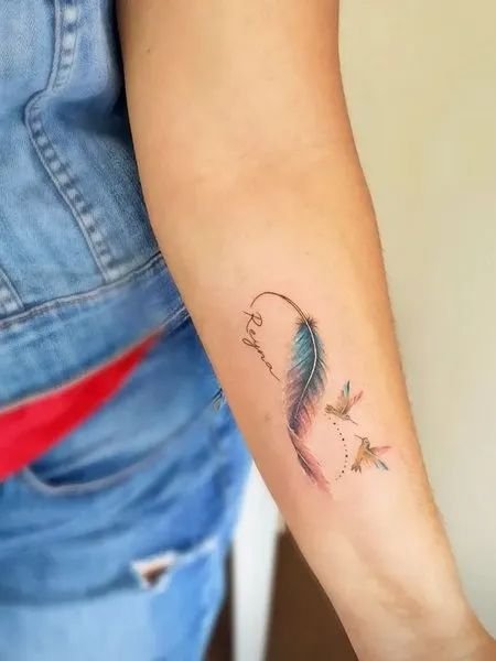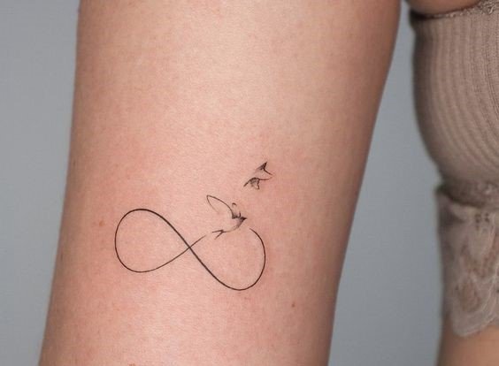 - El diseño del tatuaje Infinito con aves - se interpreta como el deseo de ser libre, afinidad por los viajes y excursiones. Anhelo por el movimiento constante. Las personas con tales tatuajes tienen un carácter rebelde, son obstinadas y siempre defienden sus opiniones.