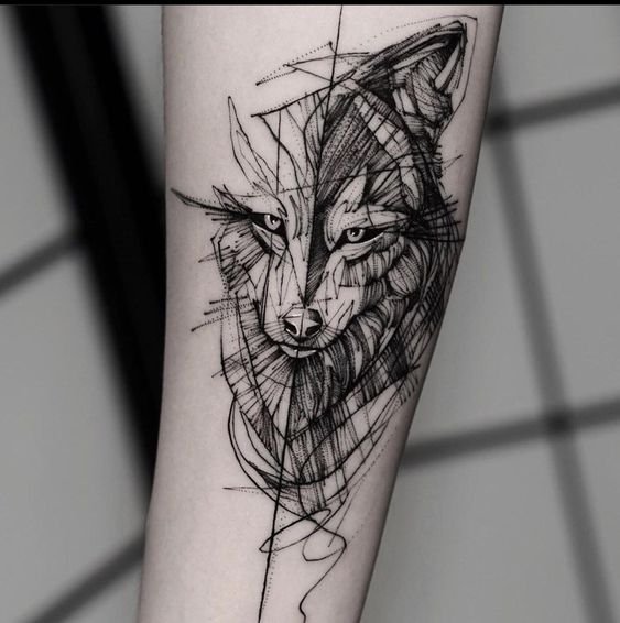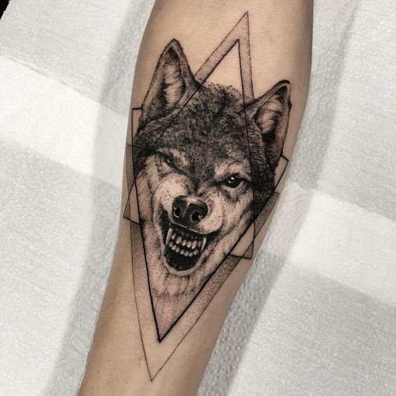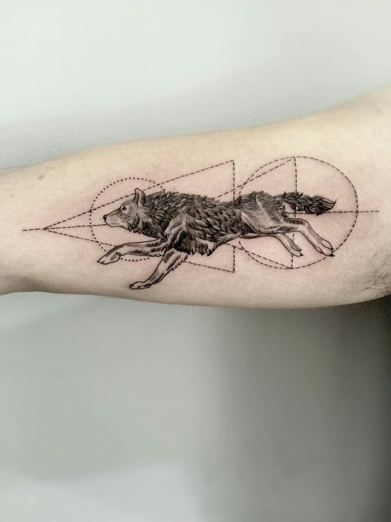 - Lobo en estilo geométrico: este diseño utiliza formas geométricas y líneas para crear la imagen del lobo. El estilo geométrico del tatuaje le da un aspecto moderno y abstracto, y también puede agregar significados simbólicos adicionales, como armonía, equilibrio o espiritualidad.