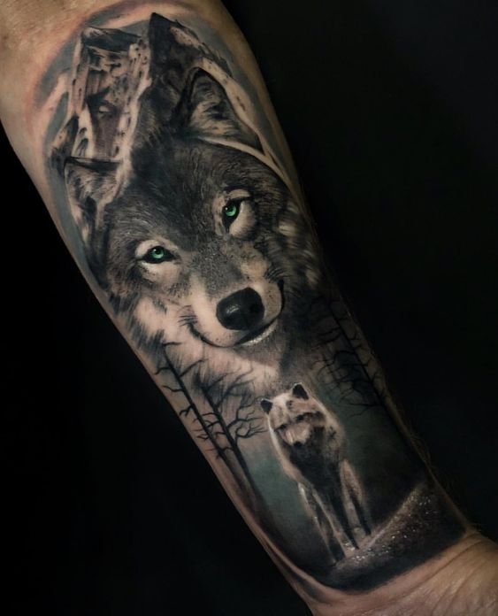 - Lobo realista: es una imagen detallada del lobo con ojos expresivos y una textura de pelaje realista. Este tipo de tatuaje transmite la fuerza y la belleza natural del lobo, así como su carácter independiente y salvaje.