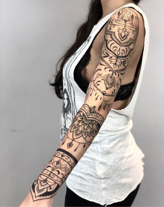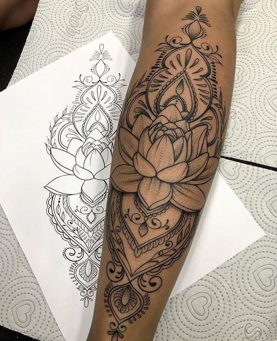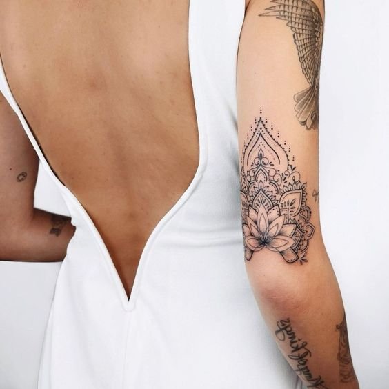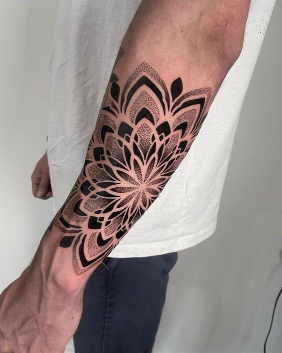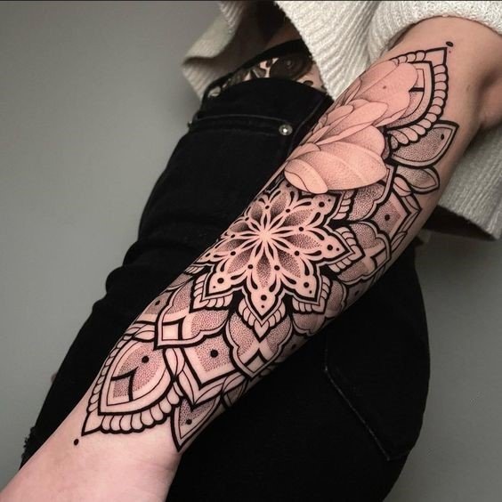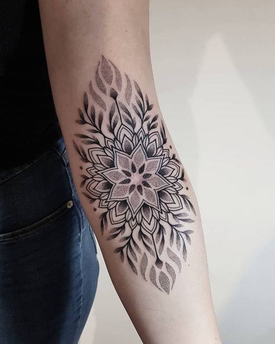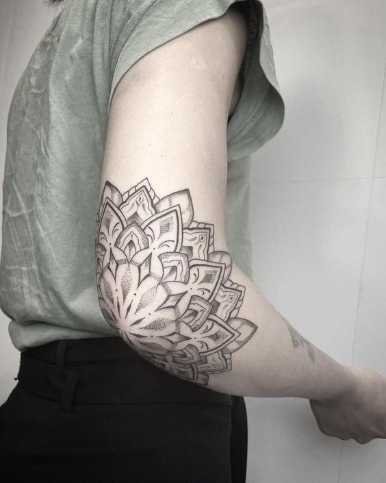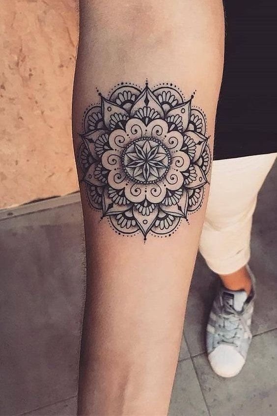 El diseño de tatuaje de Mandala es un símbolo sagrado. Se puede hacer en diferentes partes del cuerpo. Brinda paz, serenidad y armonía con el mundo que nos rodea a su dueño. Tiene sus raíces en la cultura del budismo e hinduismo.