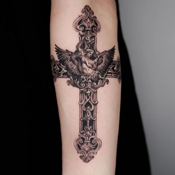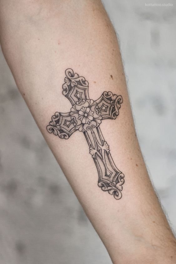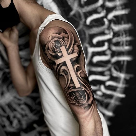 El tatuaje con una cruz es visto por los hombres como un símbolo de valentía, honestidad y adhesión a principios.
