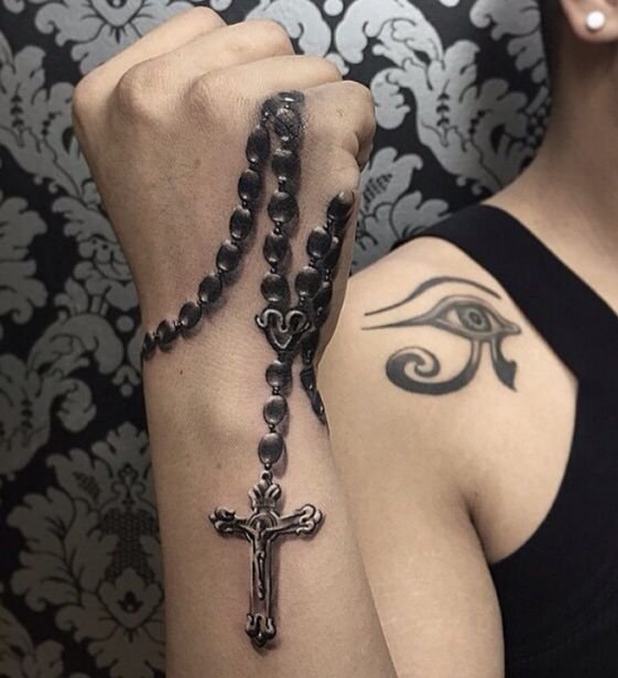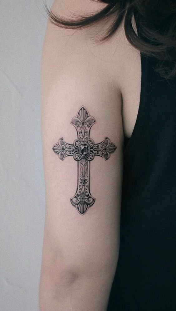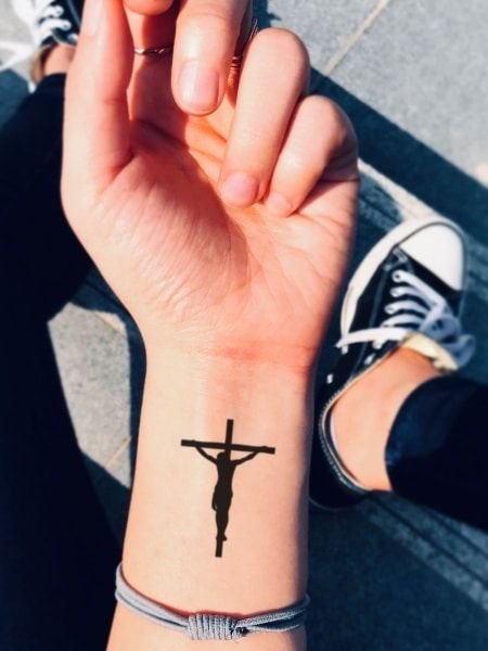 Las mujeres eligen el diseño del tatuaje con una cruz en el brazo para confirmar su fuerza interna, tenacidad y desarrollo espiritual. Lo tatúan en la muñeca como una pulsera para resaltar su feminidad y ternura. Agregan inscripciones para precisar el significado y plasman una cierta idea que refleja sus rasgos de carácter.