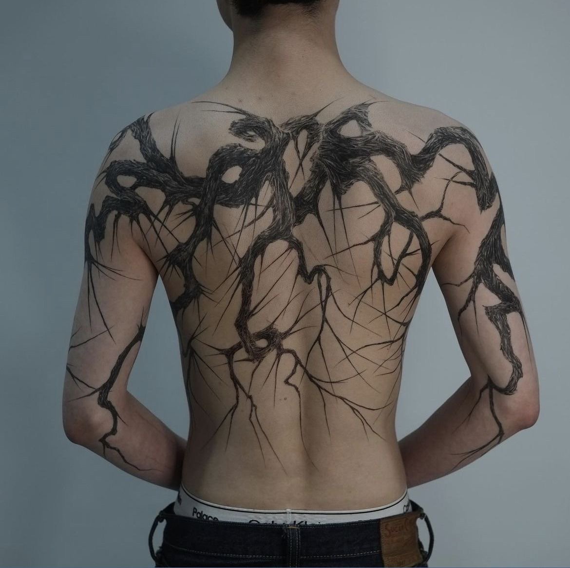 Esto se debe a que, con frecuencia, en la espalda se realizan composiciones completas de gran tamaño. En la superficie de la espalda se puede desplegar toda una línea argumental o representar dibujos simétricos. Debido a la gran área de cobertura, cualquier tatuaje en la espalda produce una impresión más realista. Se desea observarla, comprender lo que significa para su dueño y lo que el autor ha invertido en ella.