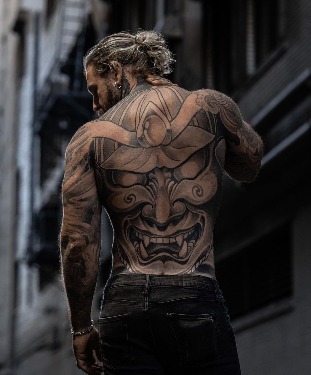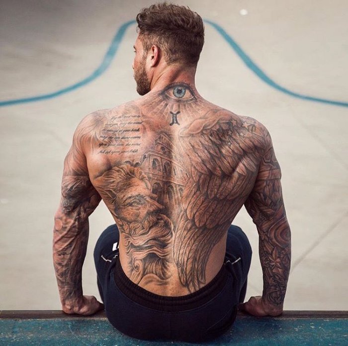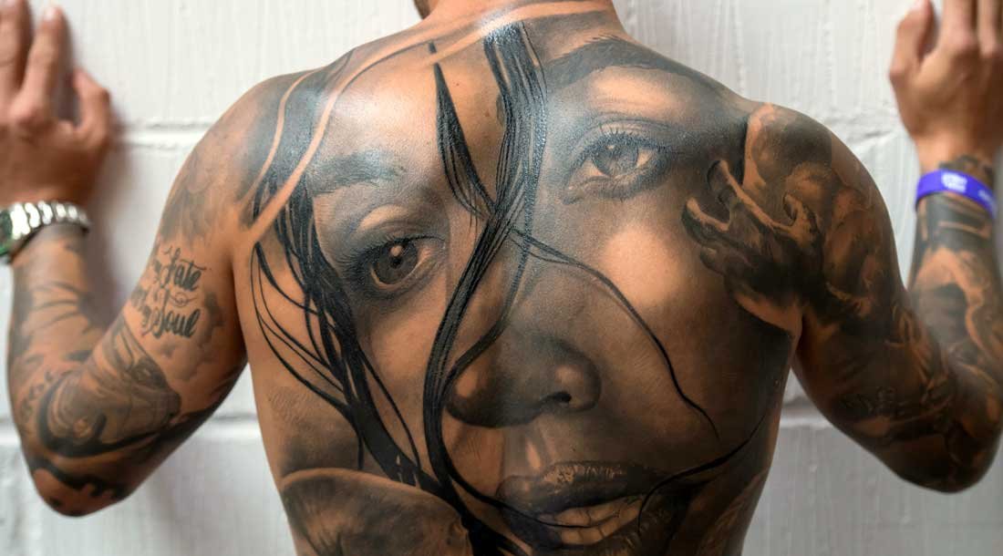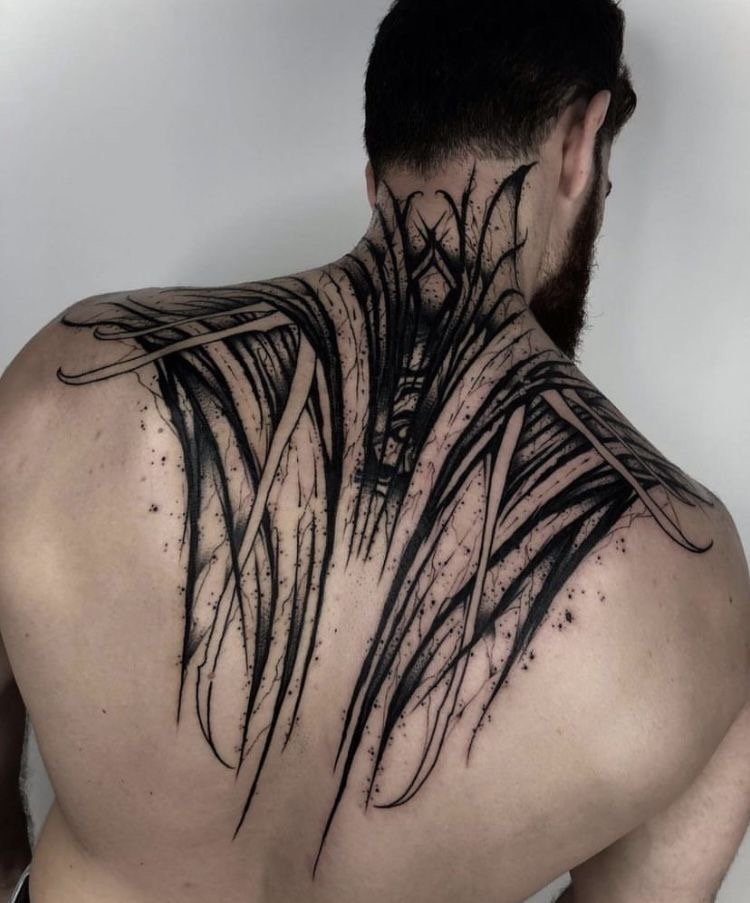 Un tatuaje en la espalda masculina es más destacado que un dibujo ubicado en otras partes del cuerpo.