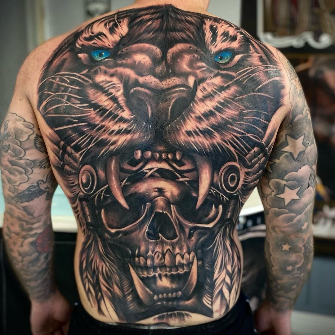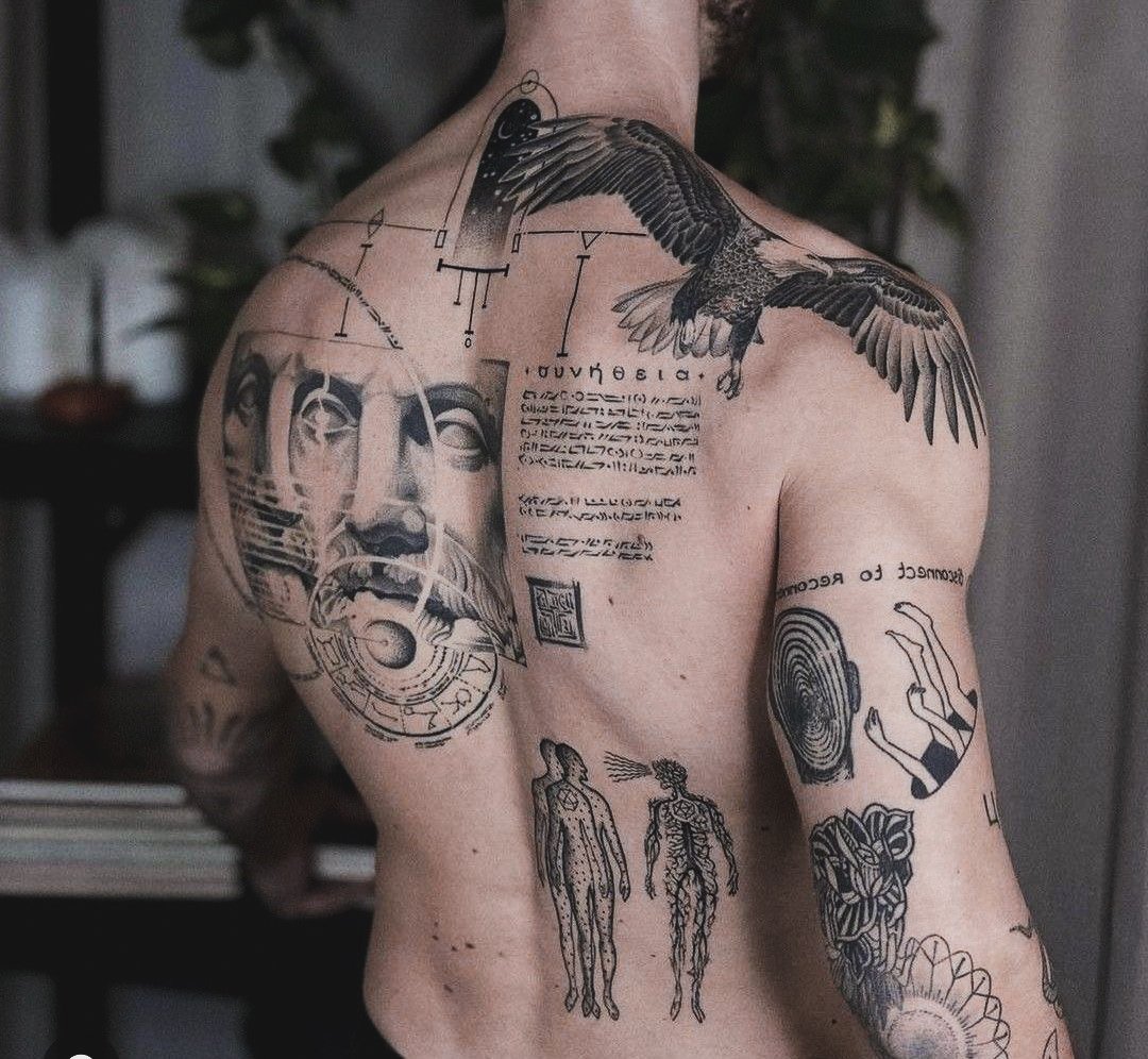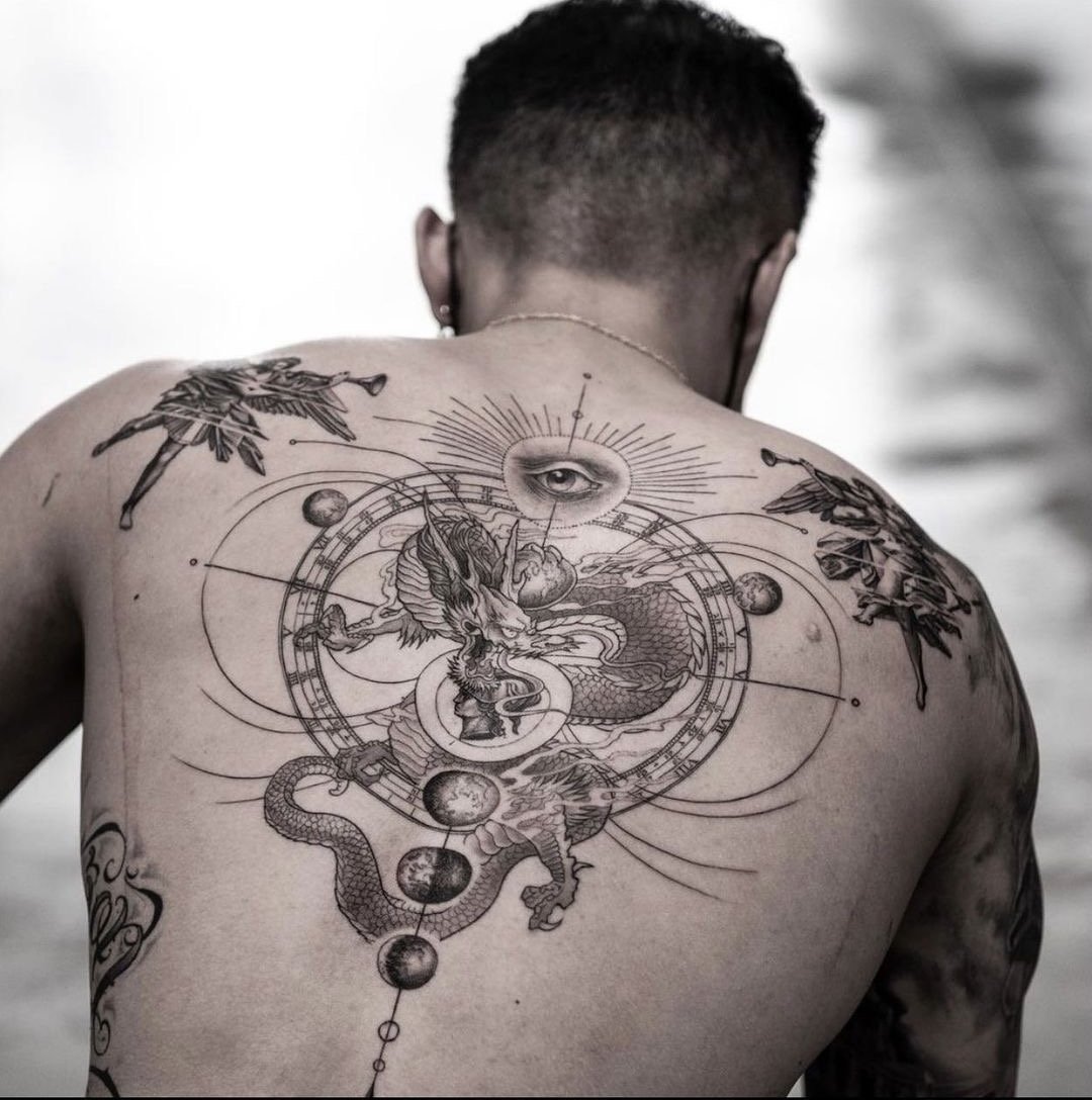Un tatuaje en la espalda masculina es más destacado que un dibujo ubicado en otras partes del cuerpo.