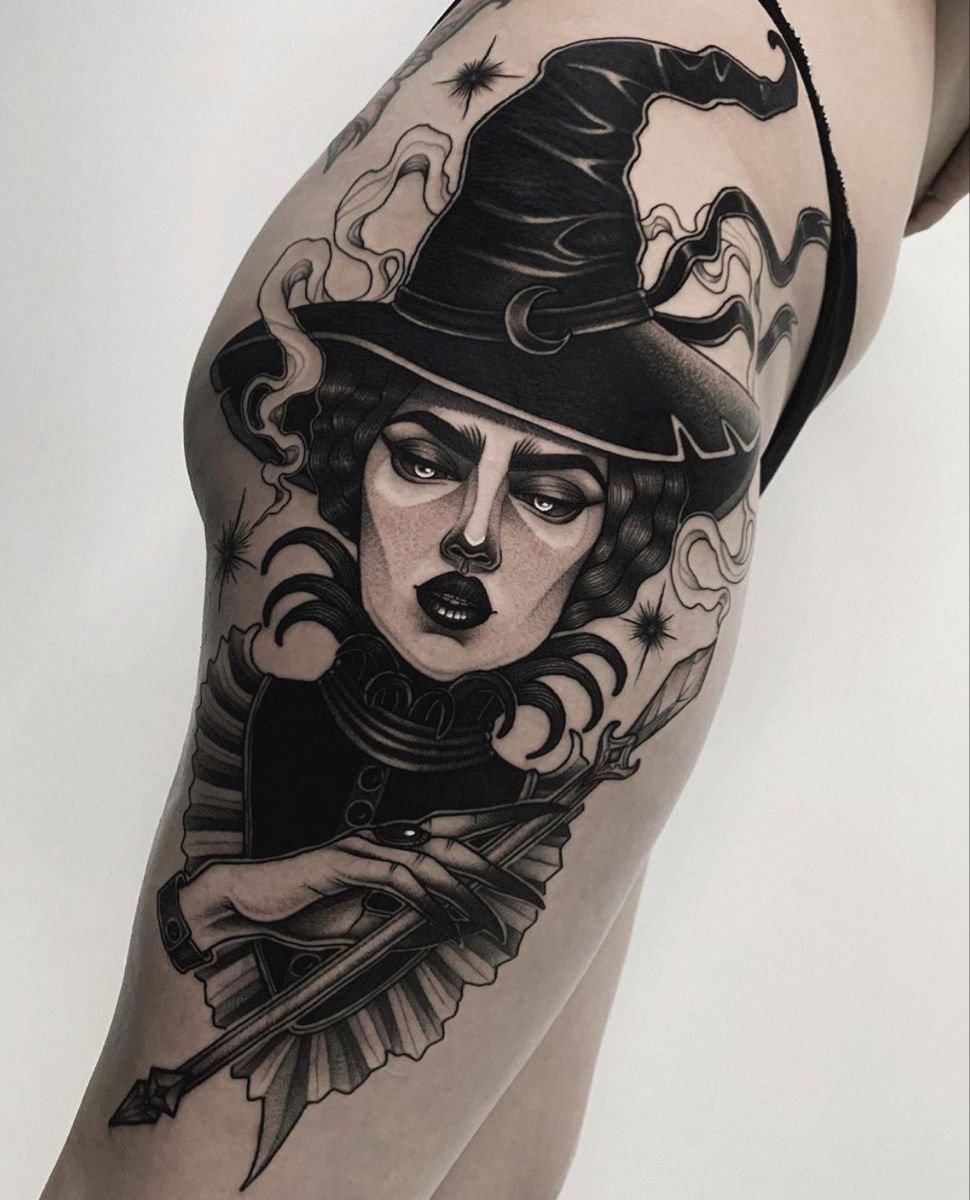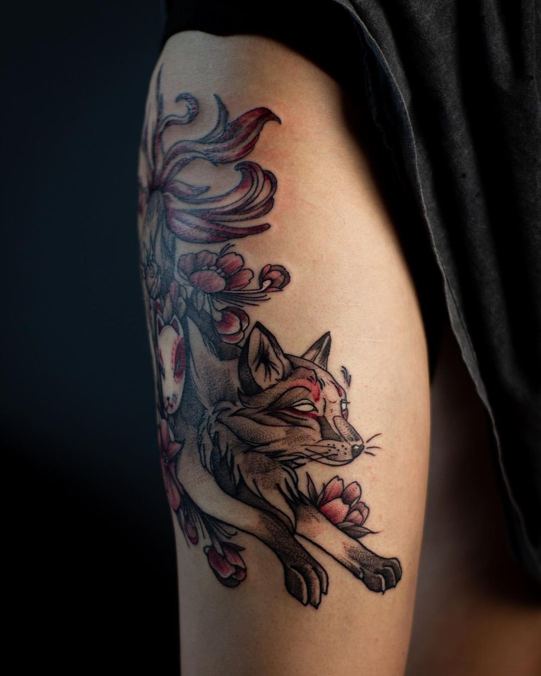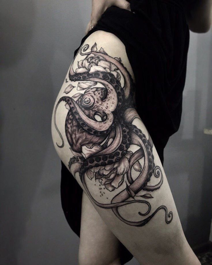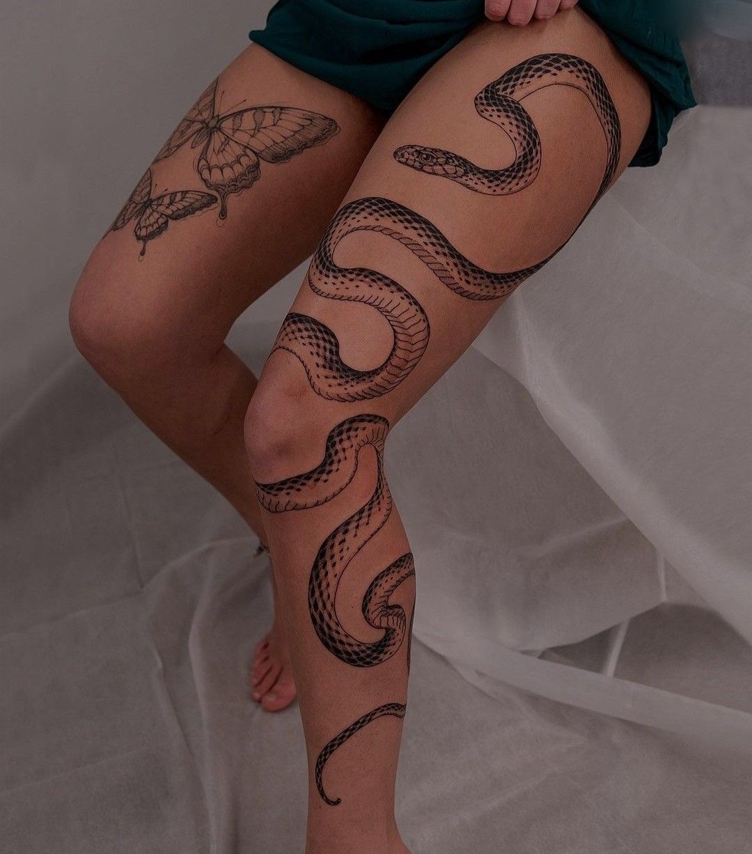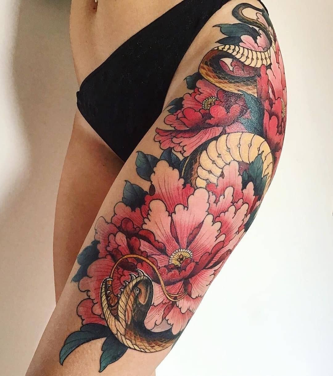 Si aún no has considerado un tatuaje en los muslos, ¿quizás es el momento adecuado? Esta área permite dar vida a diseños de cualquier complejidad y escala. Independientemente del estilo y la técnica utilizada, un dibujo en el cuerpo puede convertirse en una verdadera obra de arte con la participación de un maestro experimentado y un enfoque responsable por parte de la propietaria del tatuaje. El body art en los muslos siempre es una excelente elección.