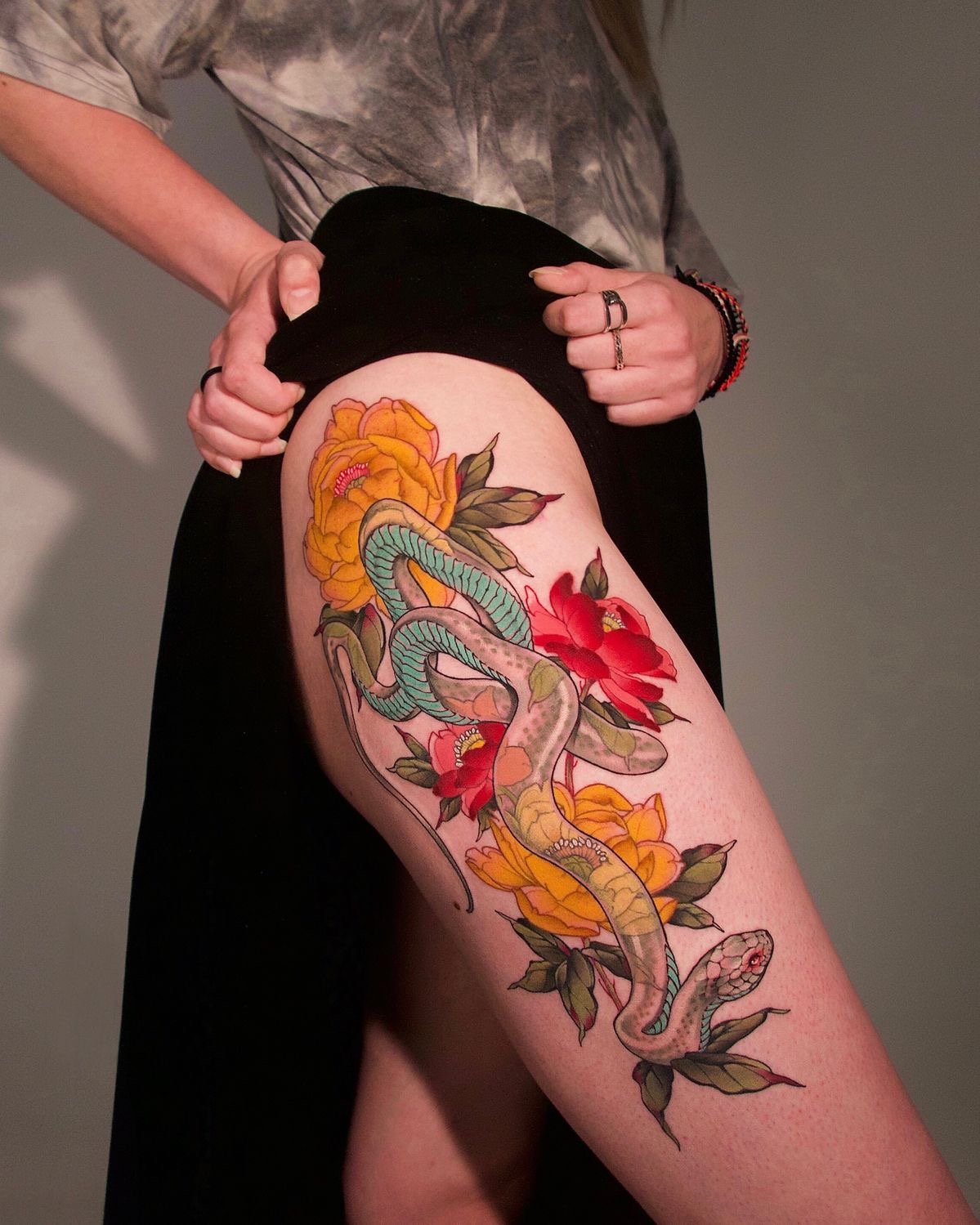 Los tatuajes en los muslos no solo son una maravillosa manera de embellecer el cuerpo, sino que también son una verdadera historia y una expresión vibrante del arte.