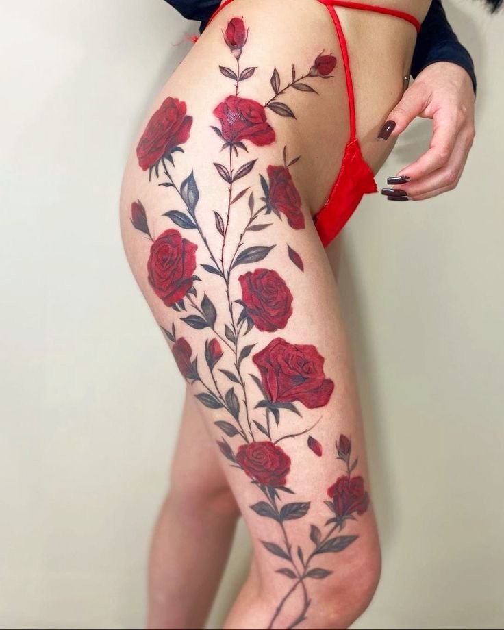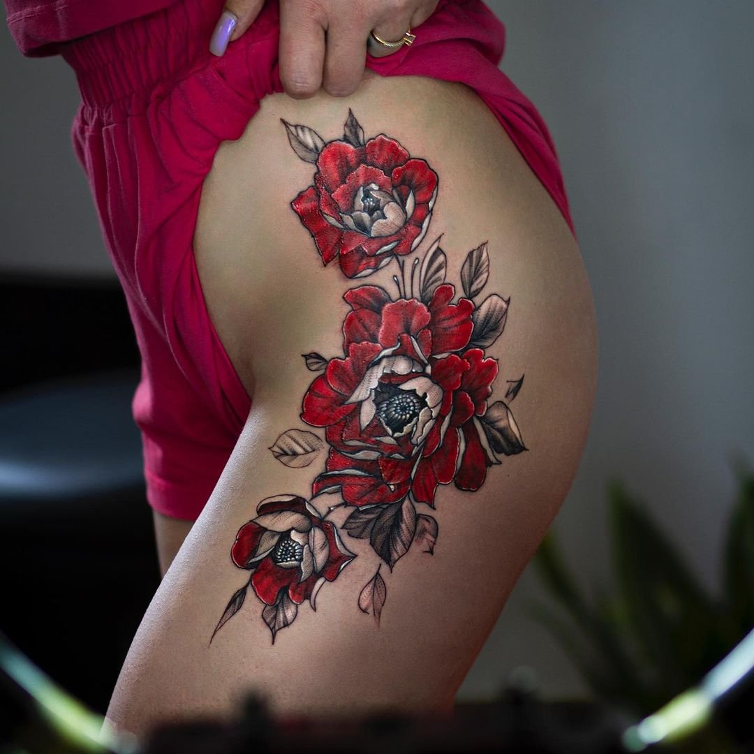 La mayoría de las áreas en los muslos tienen una pequeña cantidad de terminaciones nerviosas y una capa significativa de músculo. En comparación con muchas otras áreas, los tatuajes en los muslos son menos dolorosos.