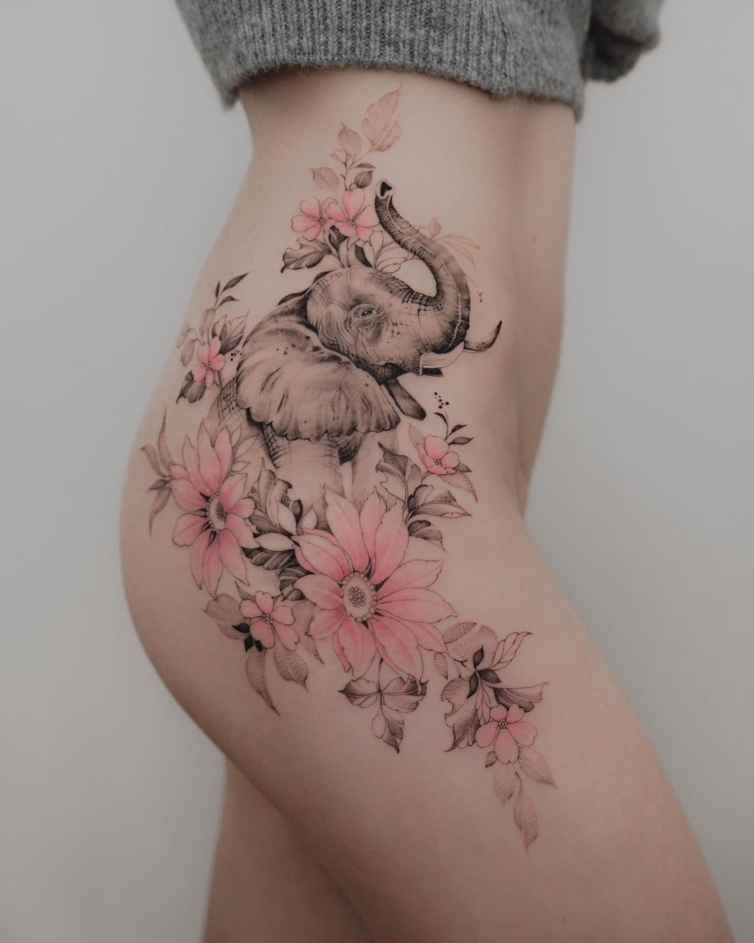 - A la gente le encantan los elefantes por diversas razones. Algunos los aprecian por la tranquilidad de estos majestuosos animales. Otros los prefieren por su profunda sabiduría y fuerza tranquila. Un elefante realista y detallado se vería excelente en el muslo. Sin embargo, también puede ser miniatura, elaborado con líneas finas y formas minimalistas.