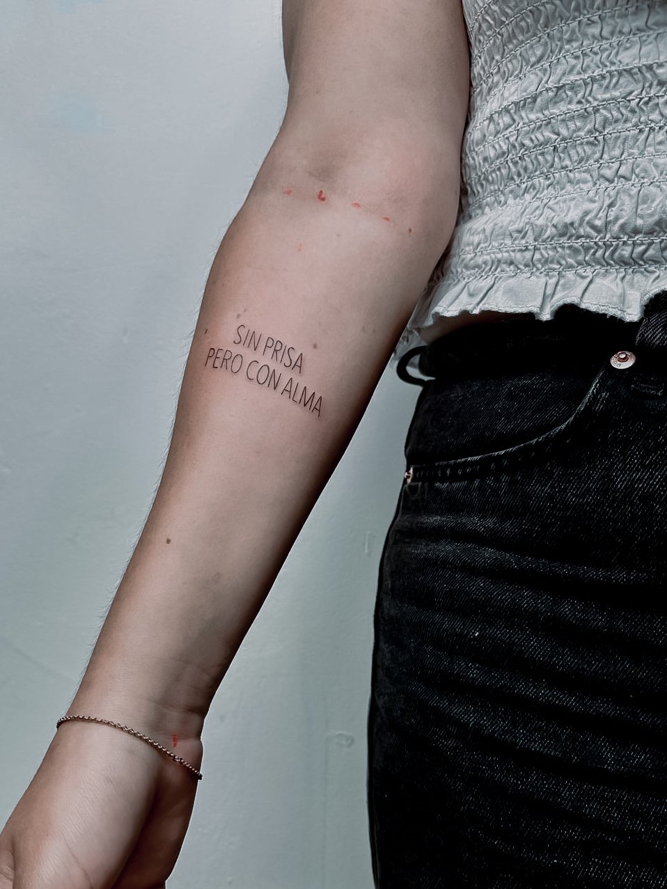 Los tatuajes con inscripciones son especialmente populares en áreas como la muñeca, las costillas o la clavícula. Pueden ser un elemento independiente o complementar un diseño principal.